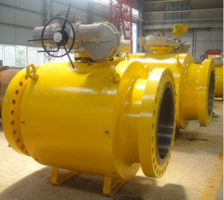 全焊接埋地球閥,包括閥體、閥座,閥體內部安裝有球體,球體與閥體內壁之間設有閥座,球體上部連接有閥桿,所述閥體的兩側分別為閥蓋,所述閥蓋上相對于閥座的注脂孔處設有注脂管路,所述注脂管路的一端設有閥座注脂機構,所述閥體的空腔上分別連接有中空腔泄壓支路和中空腔泄放支路,所述中空腔泄壓支路的一端設有中空腔泄壓機構,所述中空腔泄放支路的一端設有中空腔泄放機構。本實用新型全部采用焊接方式,結構更加緊密,使得密封性能更好,且閥桿上部連接有閥桿加長桿,便于在地上對閥門進行控制;各個支路的操作端均水平設置,方便控制;多個功能的相輔相成,確保球閥的正常工作。